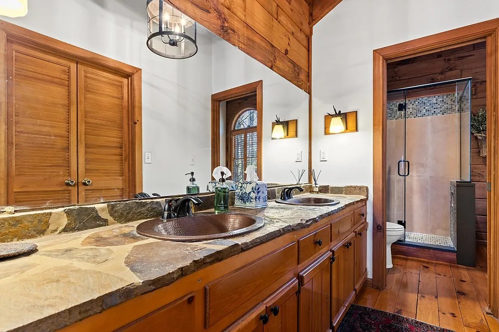 This place was clearly designed with care. Whether you’re hosting guests in the bunk room, sneaking away to the finished basement for a little solo time, or roasting marshmallows at the outdoor fireplace, every inch of this home invites connection—with nature, with loved ones, and with yourself.