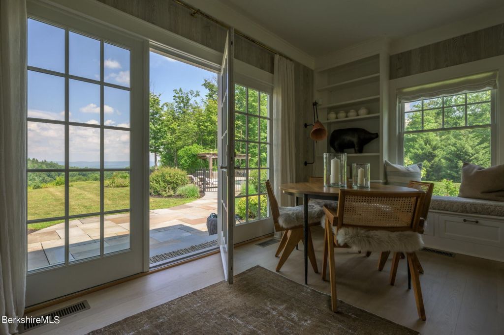 From the moment I laid eyes on 32 Oxbow Road, I was captivated by its seamless integration with the natural surroundings. The home’s expansive windows frame breathtaking views of the Berkshire Mountains, allowing natural light to flood the interiors and creating a warm, inviting atmosphere.