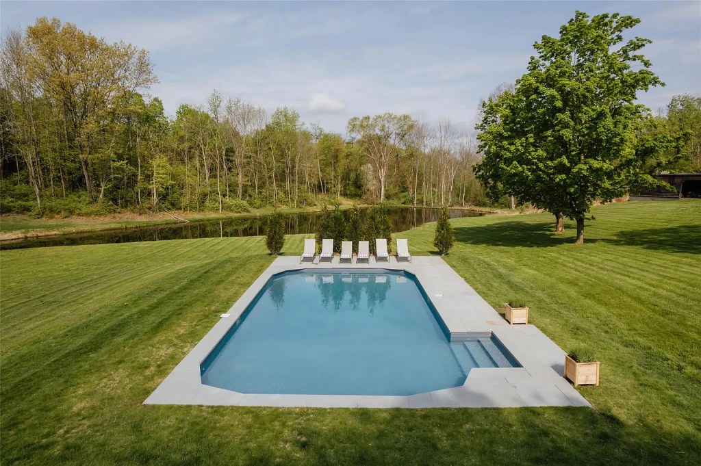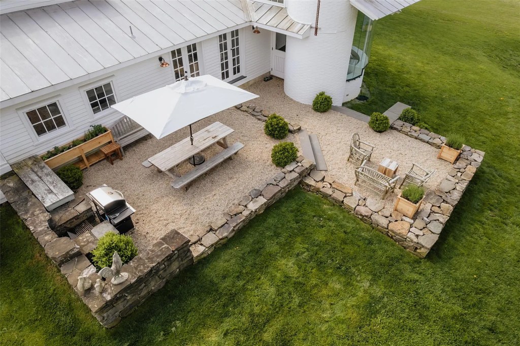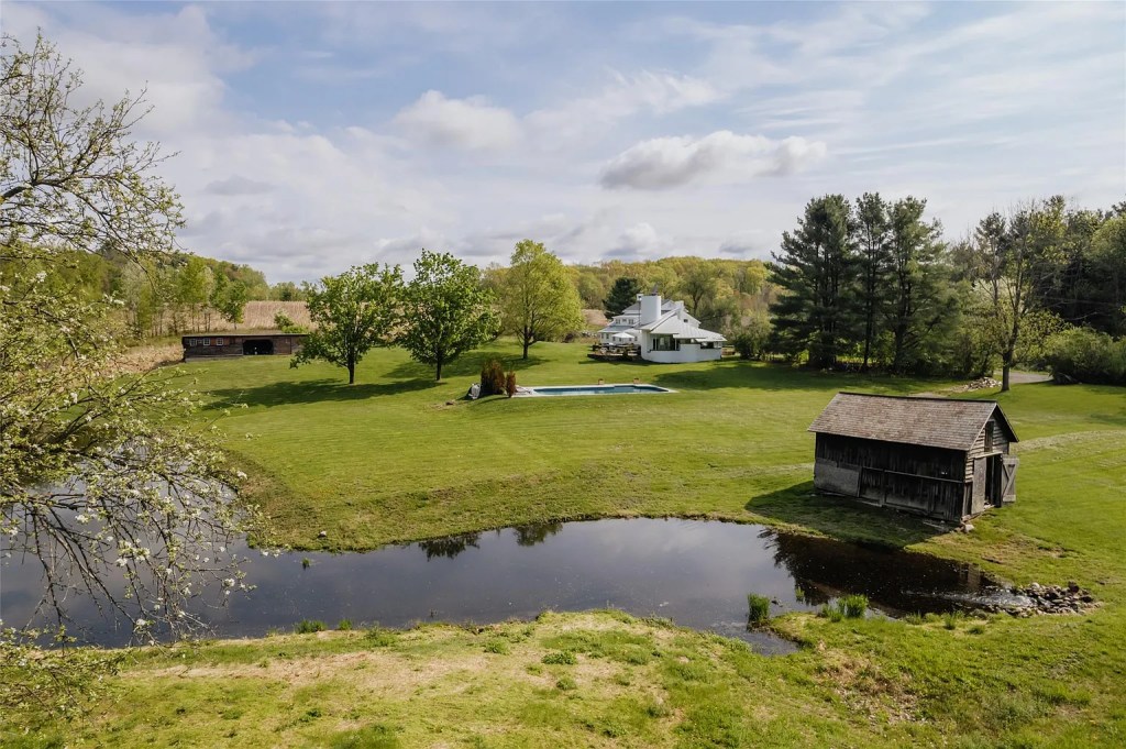 - Stone terraces for outdoor dining, two spring-fed ponds, and two picture-perfect barns