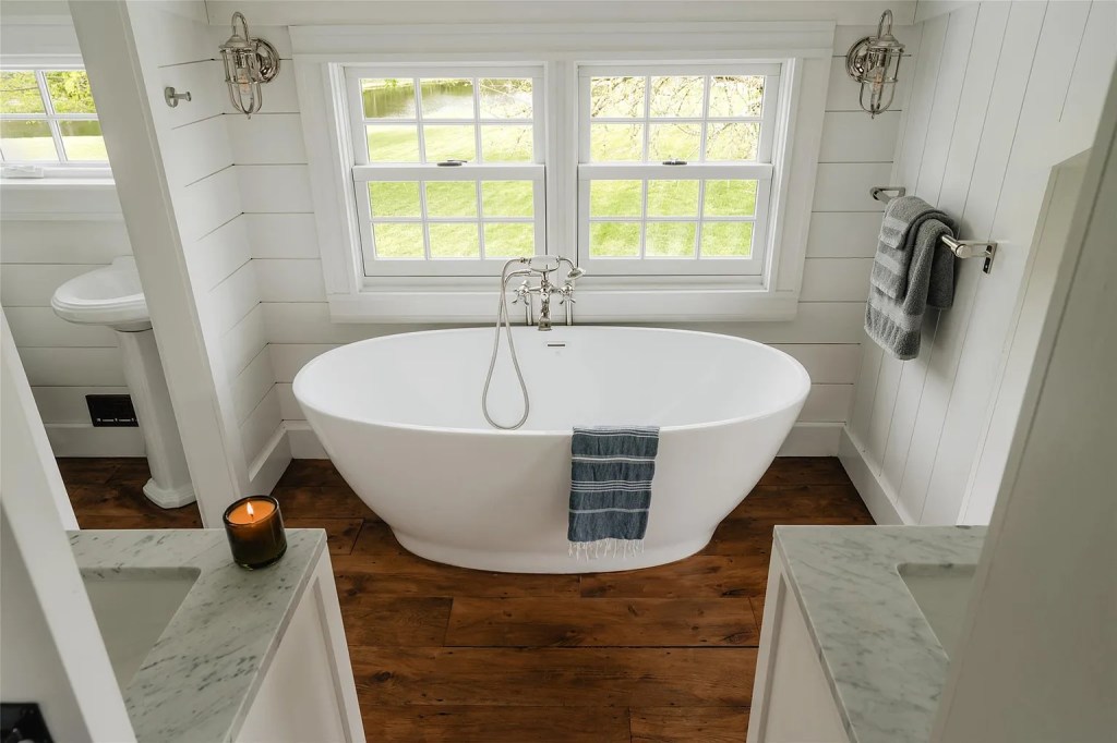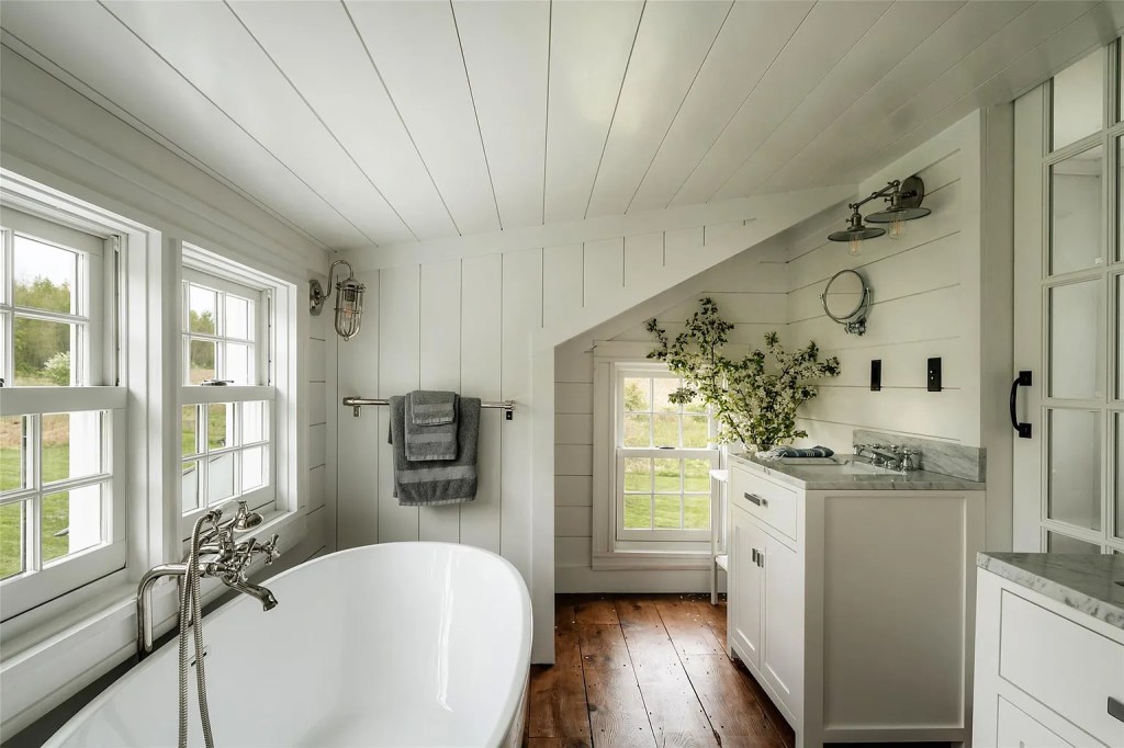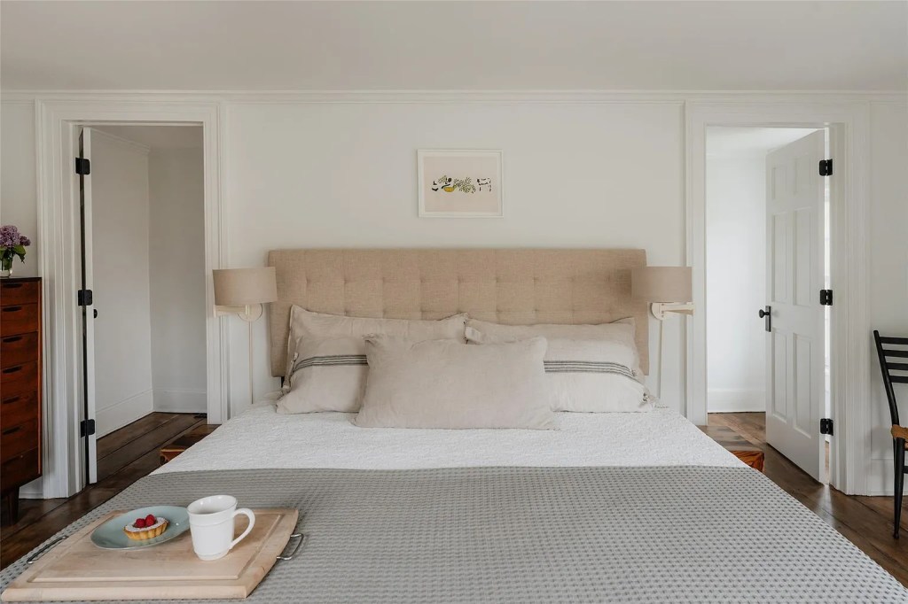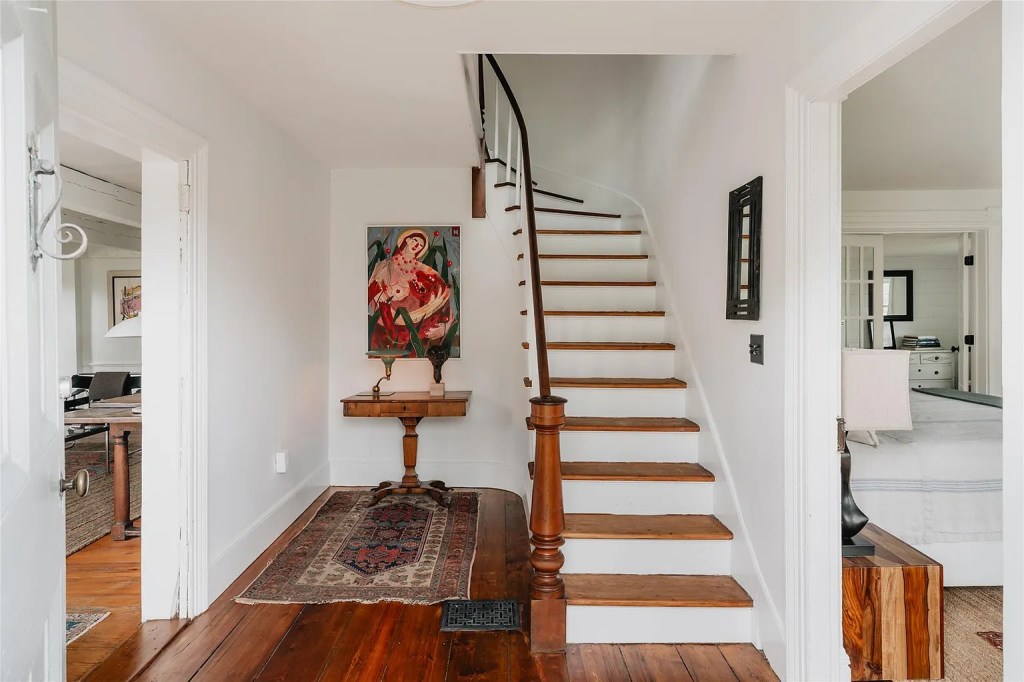 - Original 1740 and 1840 farmhouse details: hand-hewn beams, Dutch doors, wide-plank floors, antique hardware