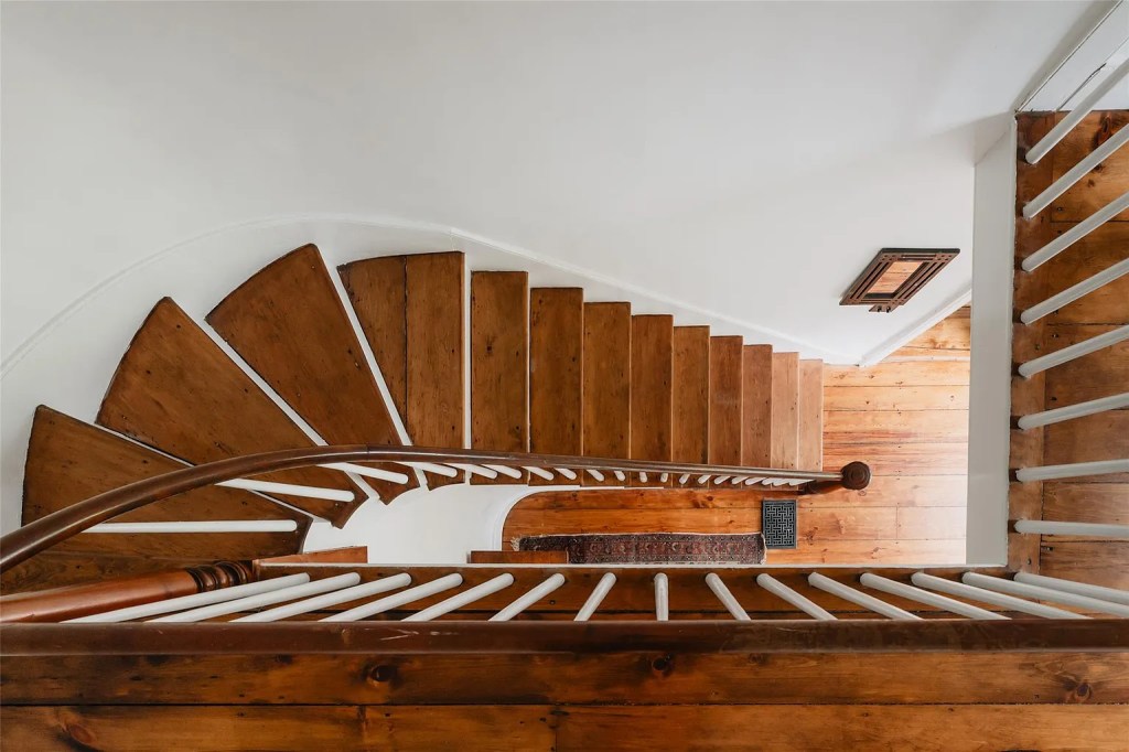- Curved sculptural staircase as a central historic focal point