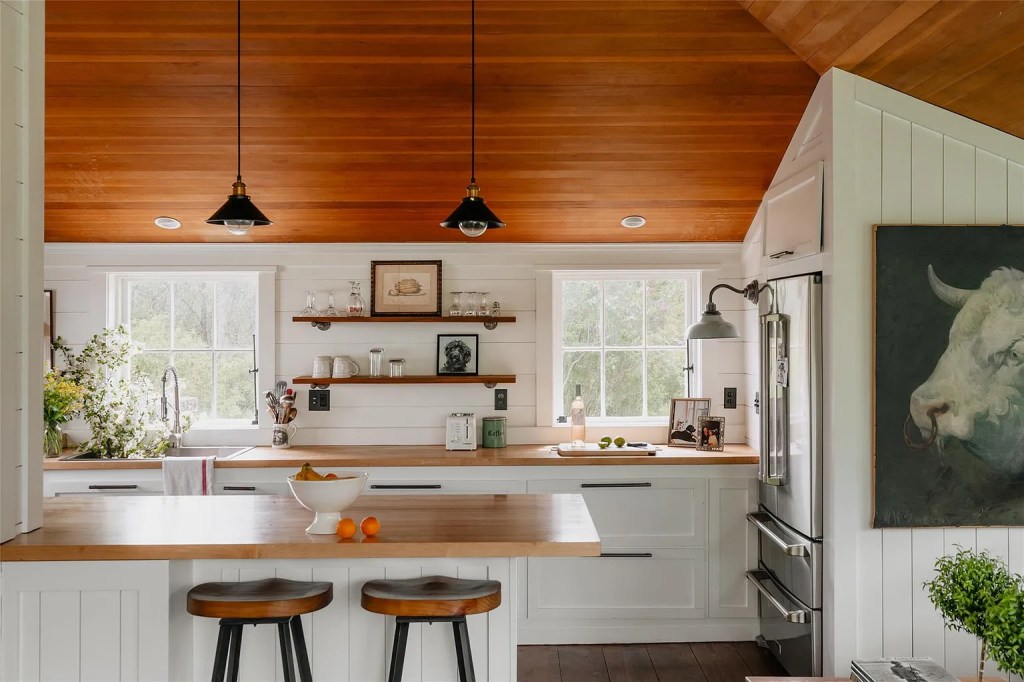No caption needed here—the pictures speak for themselves. The warm patina of the barn wood, the light bouncing off the kitchen counters, the way the fireplace anchors the room like a quiet guardian… It’s poetry.