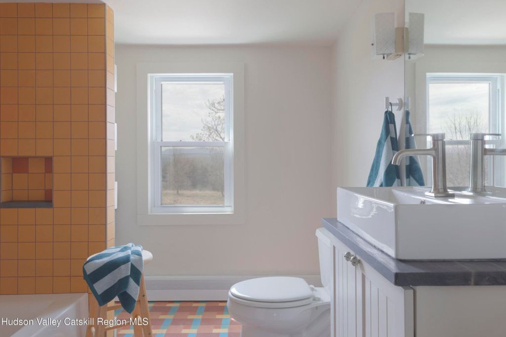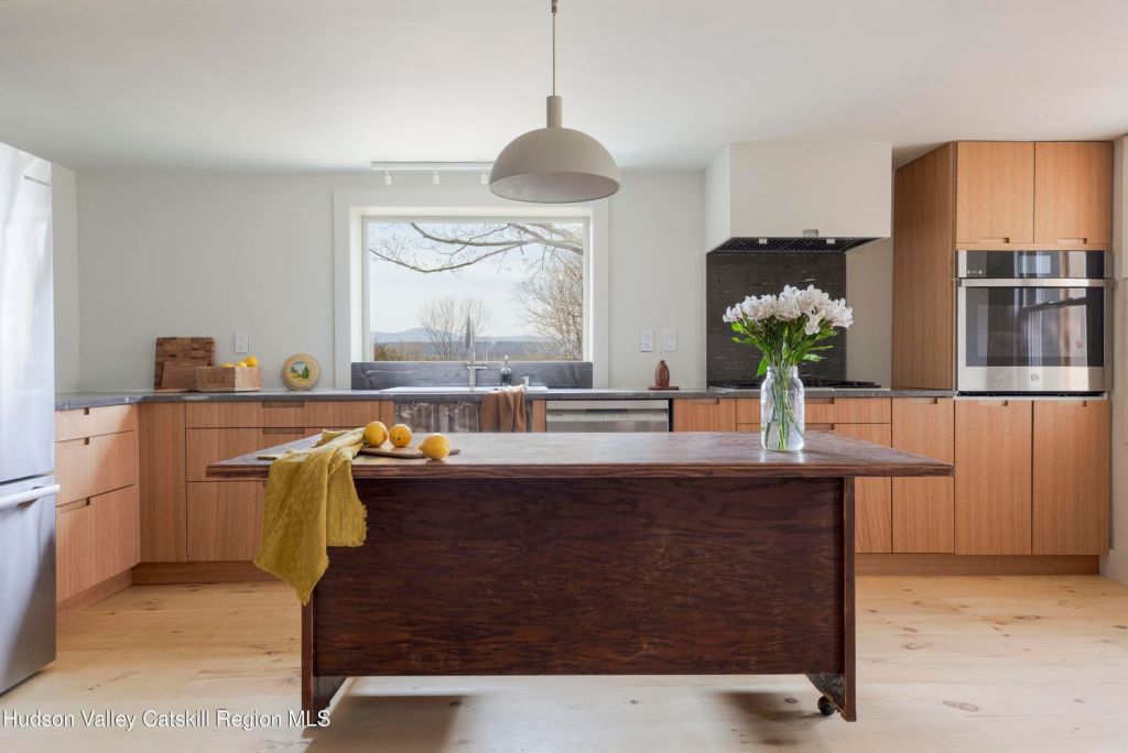 - Picture windows in the kitchen and dining areas that frame Catskill views like art