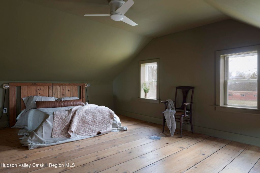 Tucked along a quiet country road just outside the Hudson River village of Athens, New York, 857 Flats Road is the kind of home that tells a story before you even walk through the door. Built around 1900, this beautifully restored eyebrow colonial farmhouse is a rare blend of historic texture and modern function—equal parts old soul and thoughtful reinvention. It sits on just over five acres of open land with long views toward the Catskill Mountains, where light pours into wide windows and the air is soft and still.