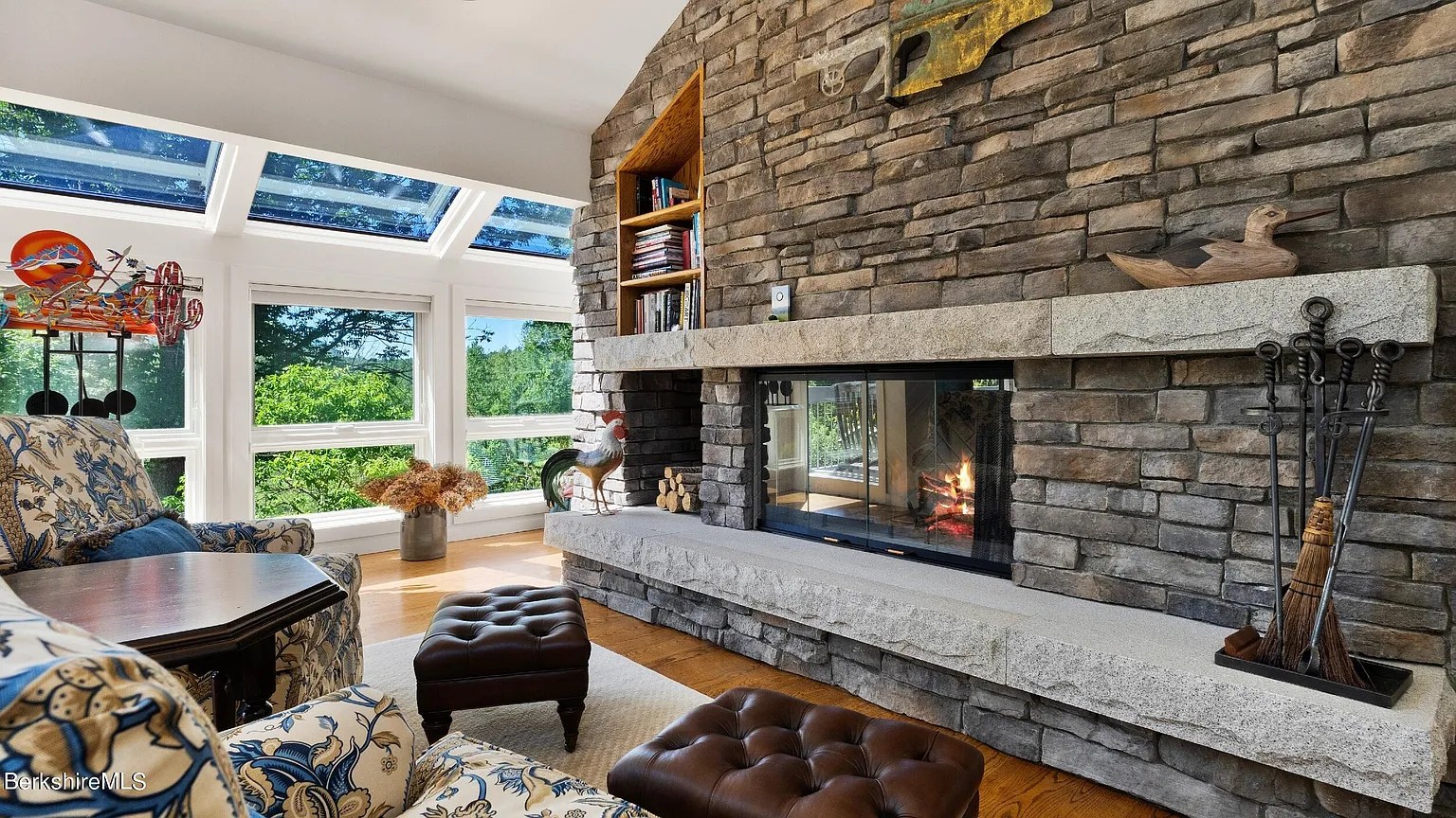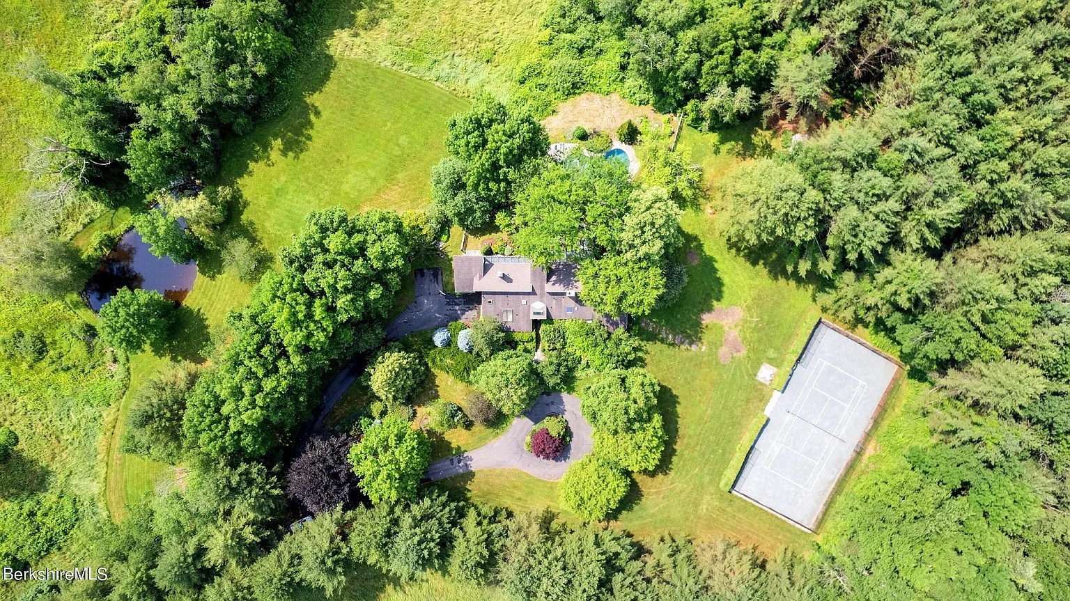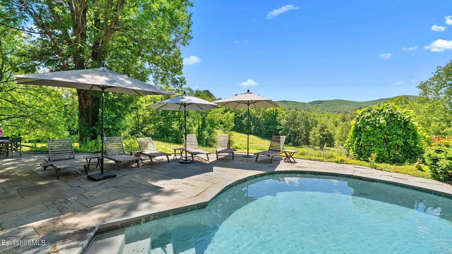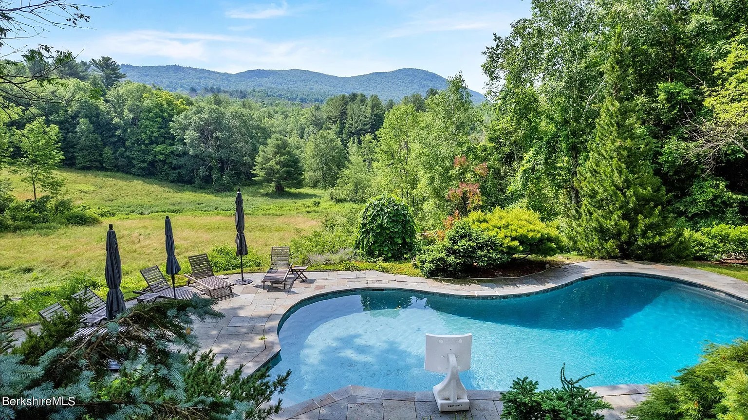 Tucked at the end of a scenic driveway in West Stockbridge, this thoughtfully designed berm home offers quiet luxury on over 25 private acres. Built into the hillside, it’s flooded with natural light and features flexible living spaces perfect for families or guests. Enjoy sweeping mountain views from the great room, three blue stone patios, and a heated in-ground pool. With a Har-Tru tennis court, home office, playroom, and tranquil pond, this is a rare Berkshire retreat built for both connection and calm.