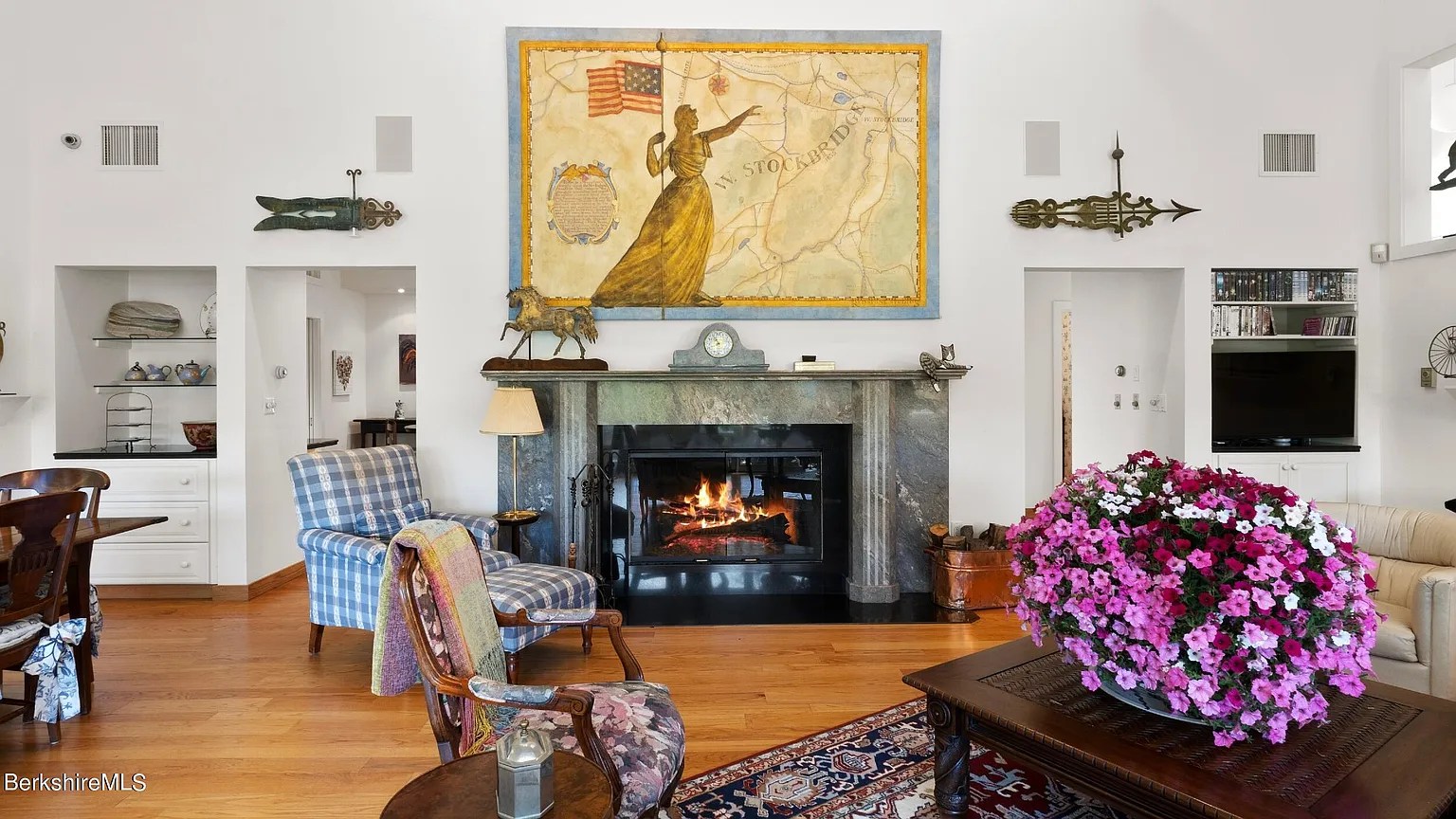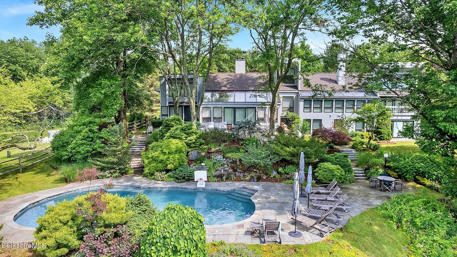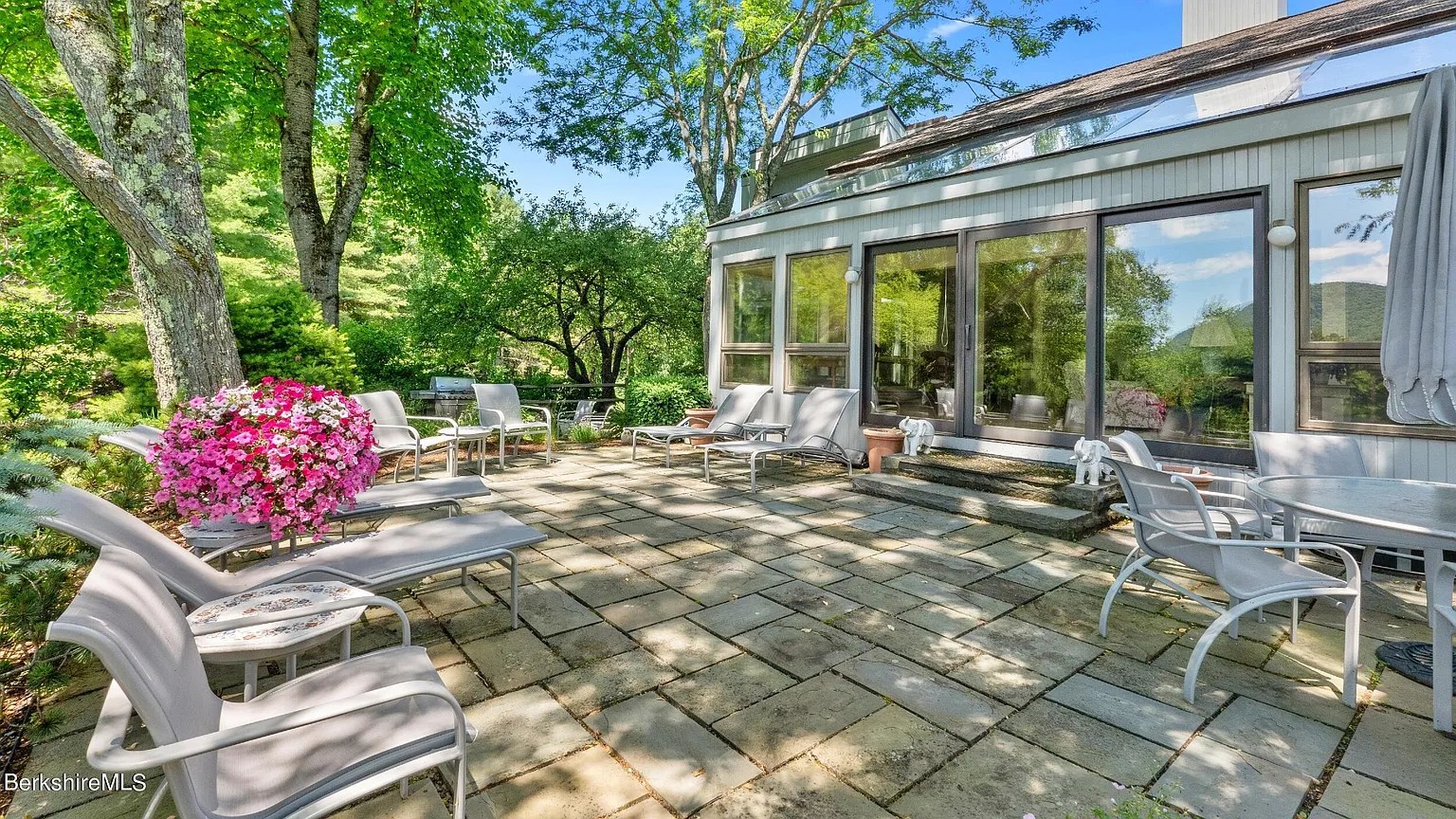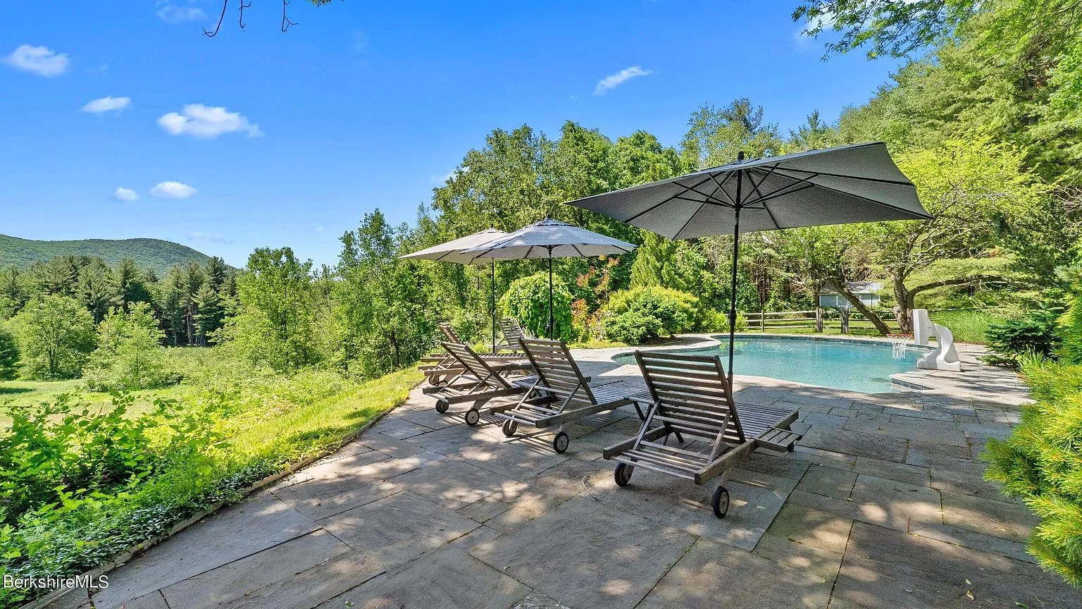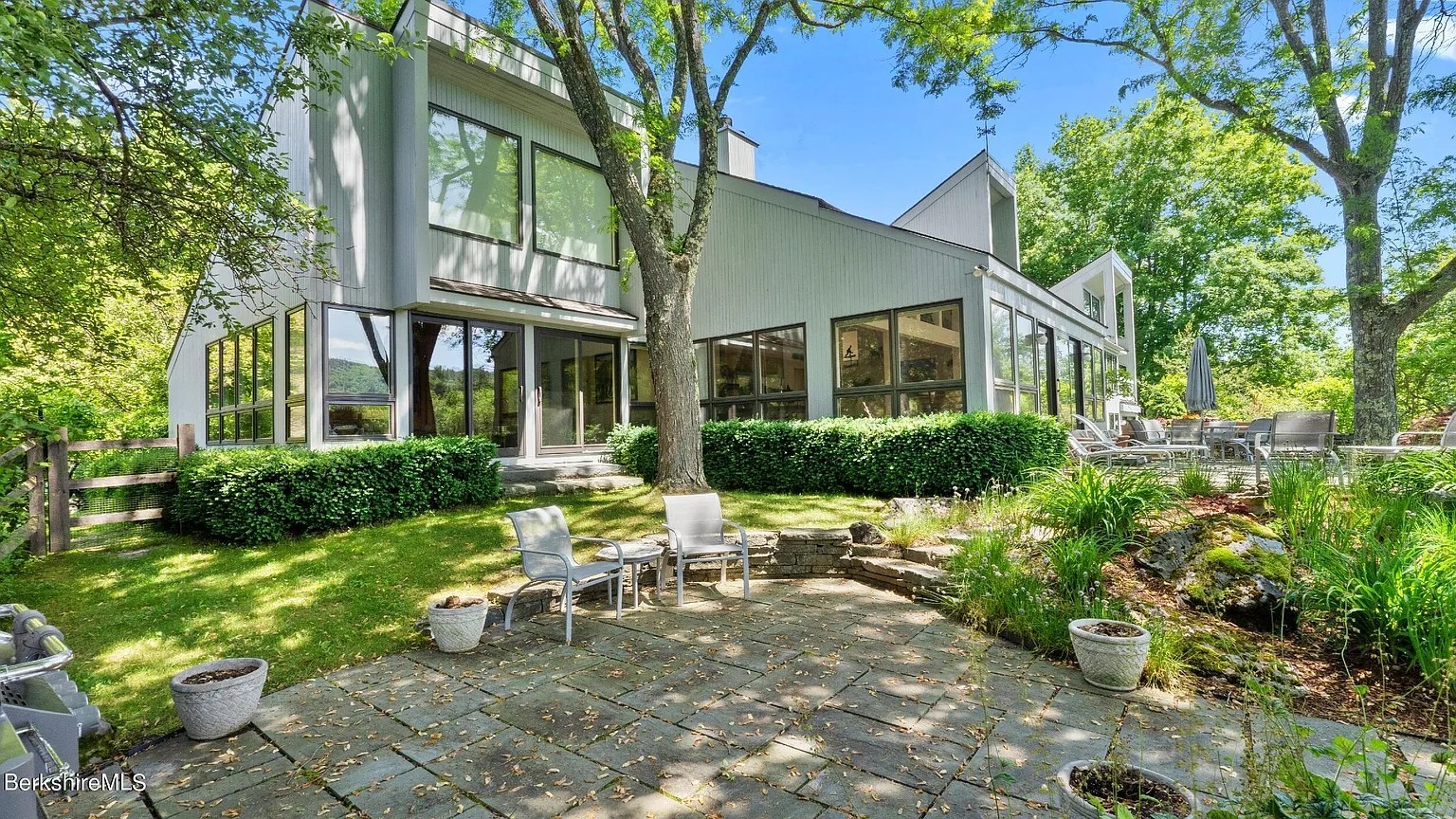 Tucked at the end of a scenic driveway in West Stockbridge, this thoughtfully designed berm home offers quiet luxury on over 25 private acres. Built into the hillside, it’s flooded with natural light and features flexible living spaces perfect for families or guests. Enjoy sweeping mountain views from the great room, three blue stone patios, and a heated in-ground pool. With a Har-Tru tennis court, home office, playroom, and tranquil pond, this is a rare Berkshire retreat built for both connection and calm.