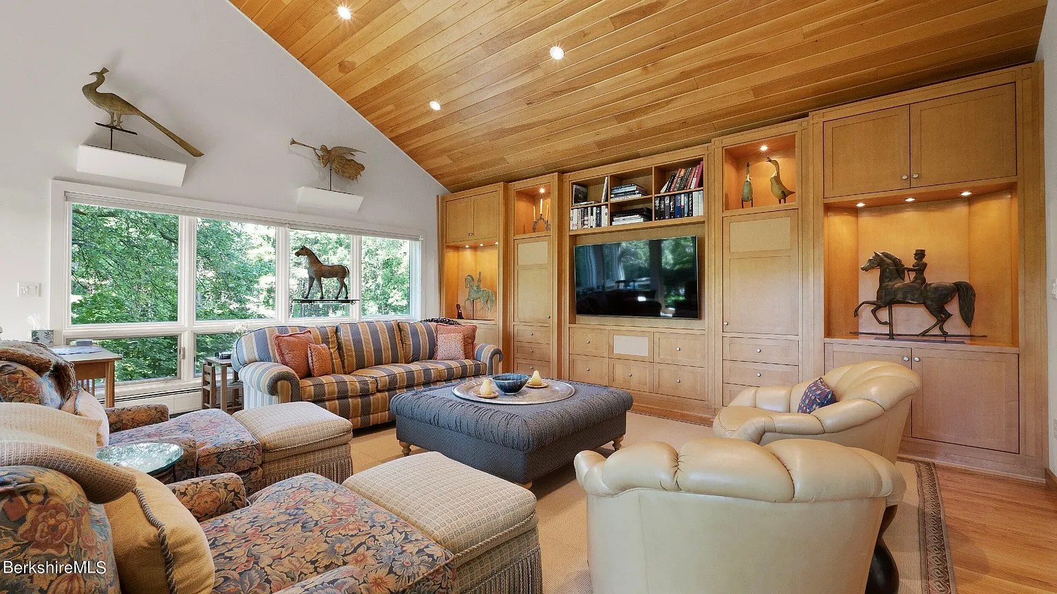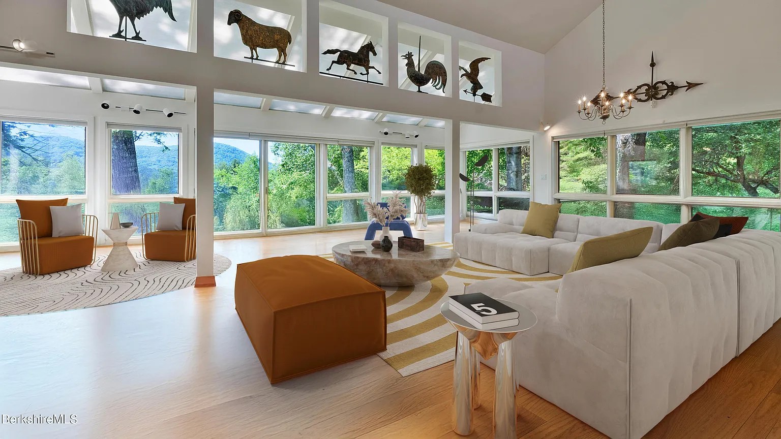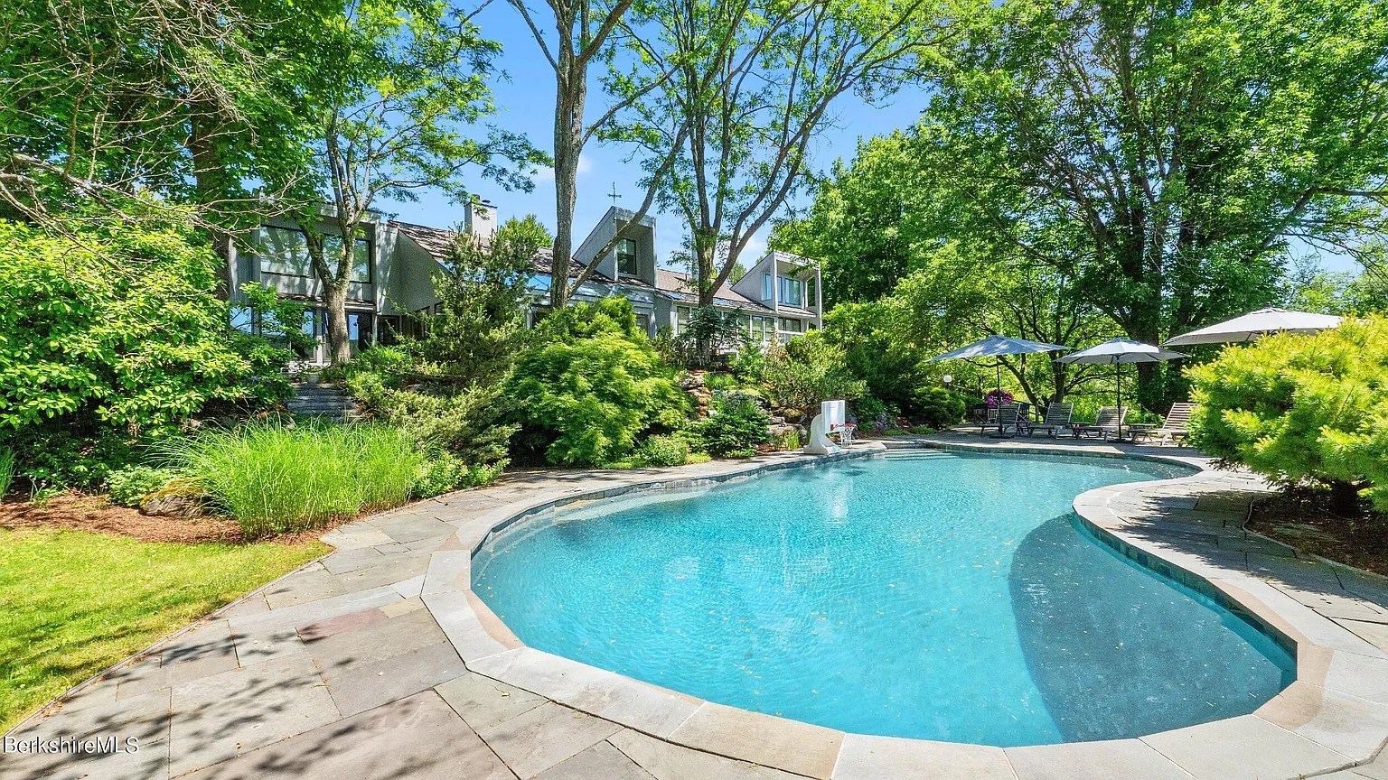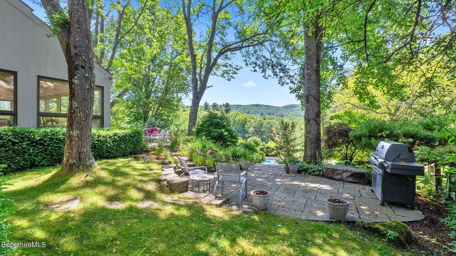 Tucked at the end of a scenic driveway in West Stockbridge, this thoughtfully designed berm home offers quiet luxury on over 25 private acres. Built into the hillside, it’s flooded with natural light and features flexible living spaces perfect for families or guests. Enjoy sweeping mountain views from the great room, three blue stone patios, and a heated in-ground pool. With a Har-Tru tennis court, home office, playroom, and tranquil pond, this is a rare Berkshire retreat built for both connection and calm.