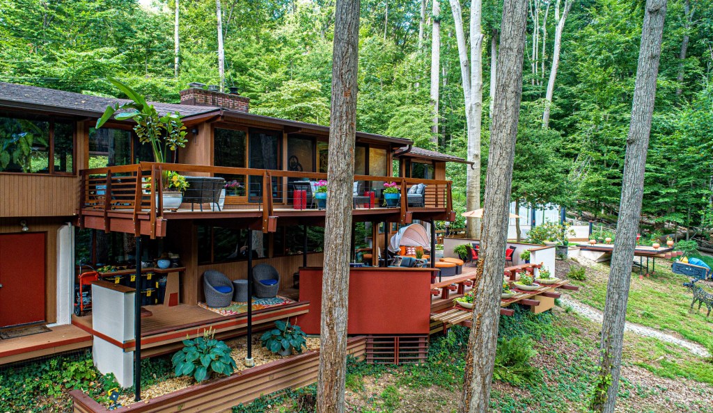 The Acorn Deck House philosophy was always rooted in connection—with nature, with structure, with the people living inside. Here, that philosophy is intact. You’re surrounded by tall oaks, hickories, and tulip poplars, with glass walls that let the seasons become part of your interior backdrop.