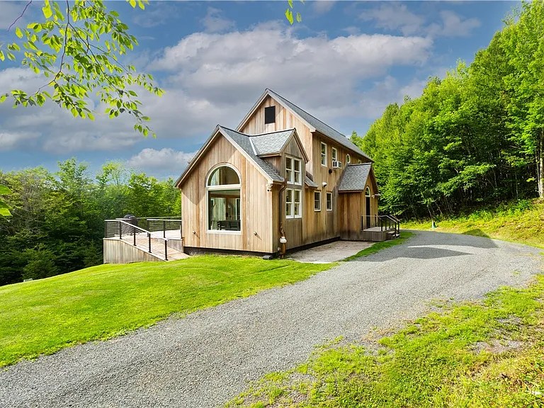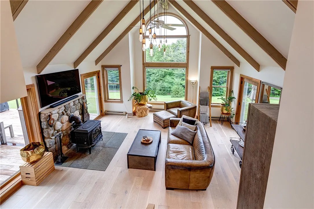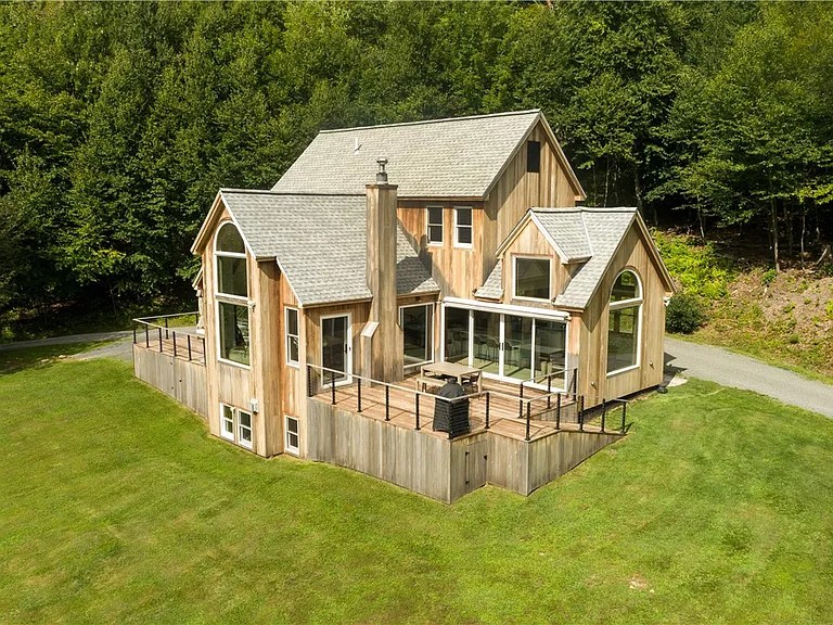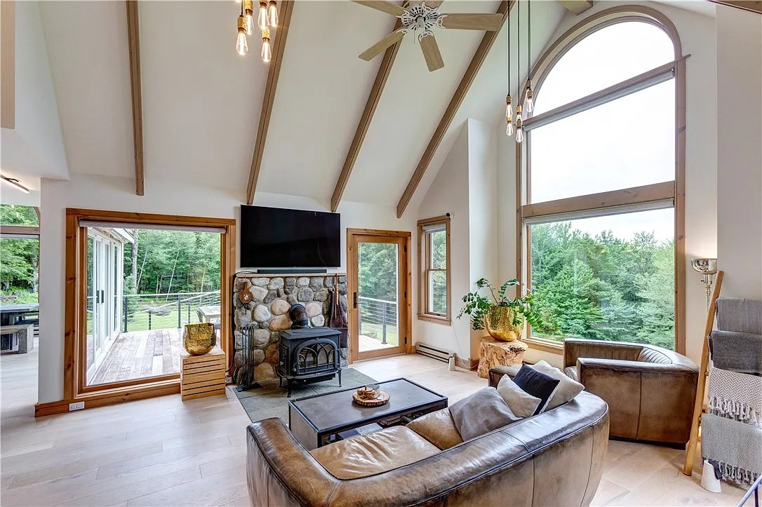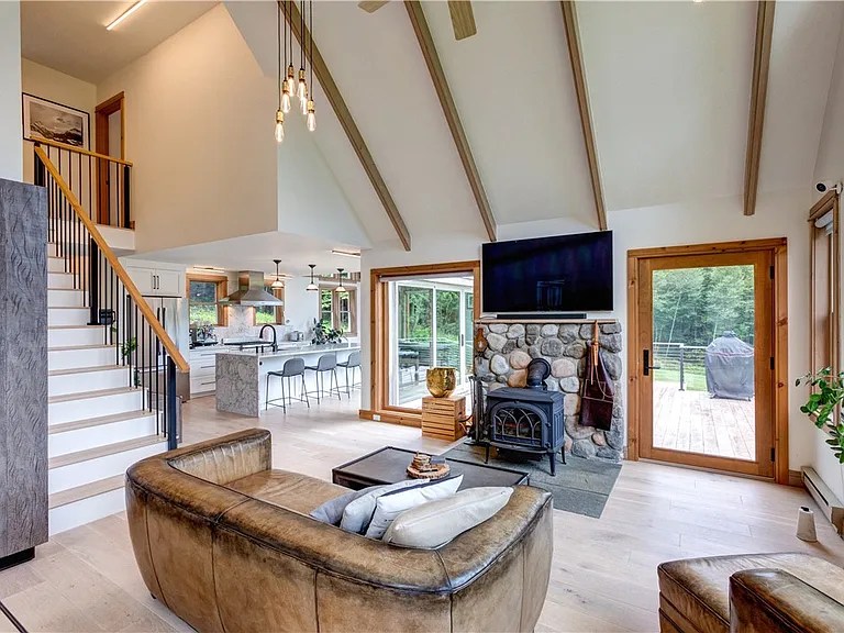 Situated on over ten acres of wooded landscape in the Catskills, this thoughtfully updated Nordic-style home blends clean modern design with the natural charm of upstate New York. Located in Margaretville and privately nestled within the Thornapple Ridge community, this 1989-built home stands as a strong example of how architecture can feel both contemporary and timeless.