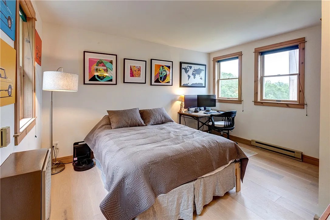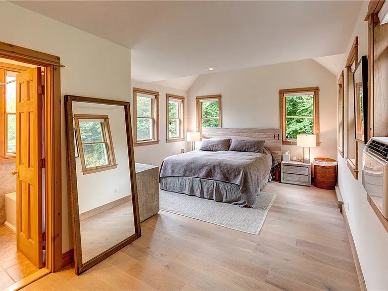 American white oak floors run throughout the home, offering durability and a consistent visual texture. These subtle but elevated materials carry through the private areas as well, including the spacious primary suite on the main floor and two additional bedrooms upstairs.