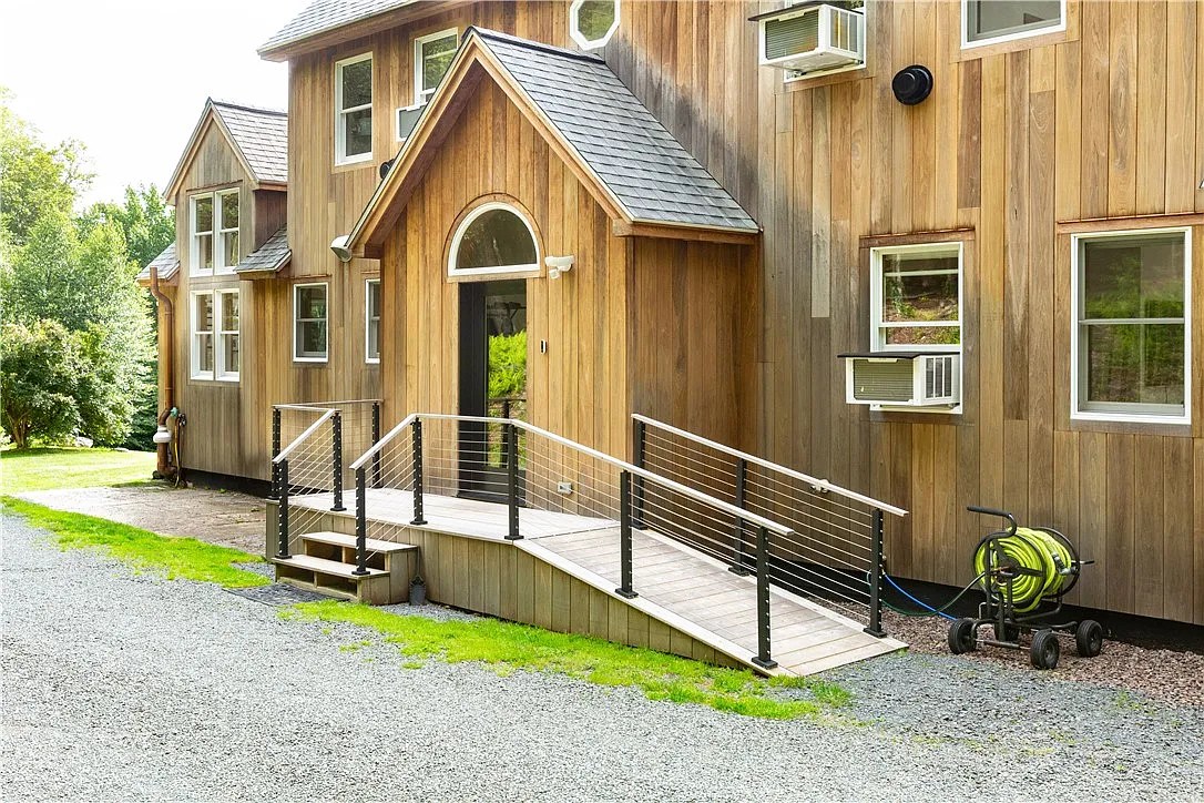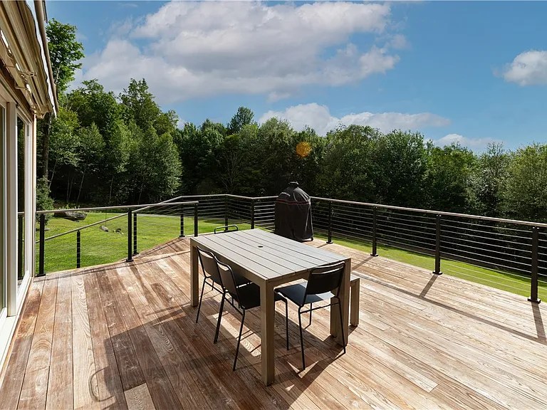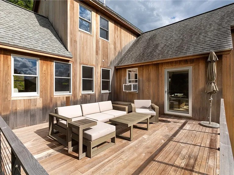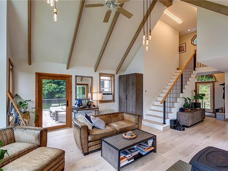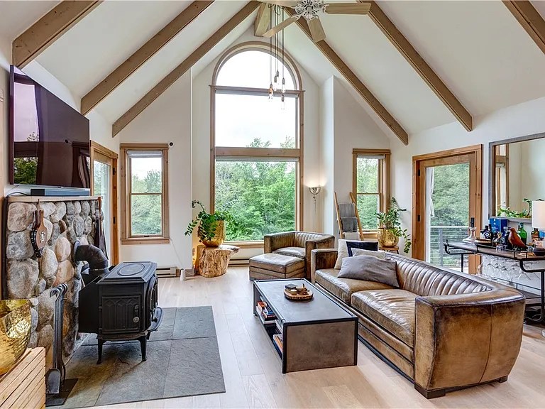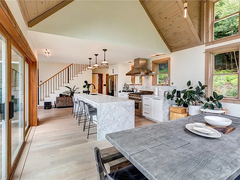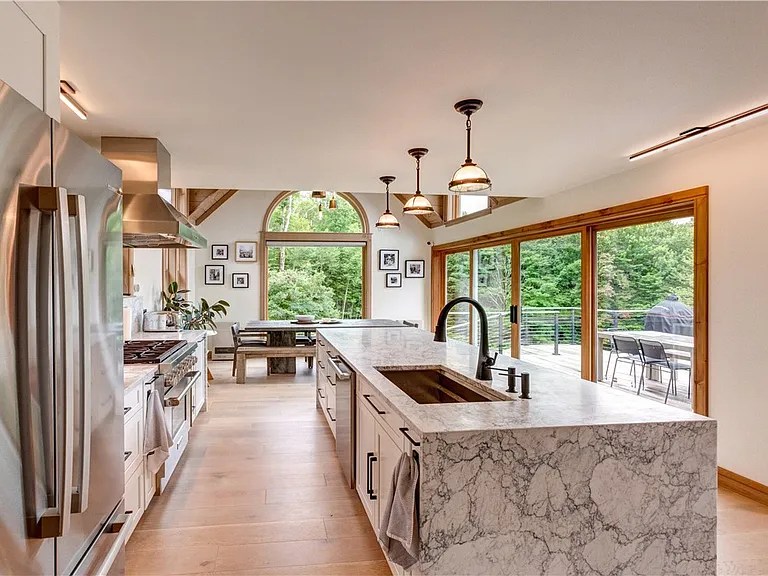 This home is located within Thornapple Ridge, an upscale enclave that includes access to a heated pool and a private nature trail. While the setting feels secluded, it’s just minutes from skiing, hiking, and shopping, and roughly 2.5 hours from New York City. The Catskills region has long been a magnet for creatives and nature lovers alike, and homes like this show why: the ability to be surrounded by beauty, both architectural and natural, without giving up comfort or convenience.