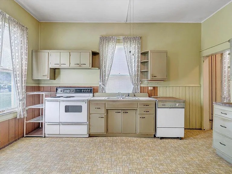 First, the headline that grabs everyone: this 2,300-square-foot home is listed at just $149,995. That’s roughly $65 per square foot, a fraction of what you’d pay in most parts of the country, especially for a property with this much architectural charm and land.