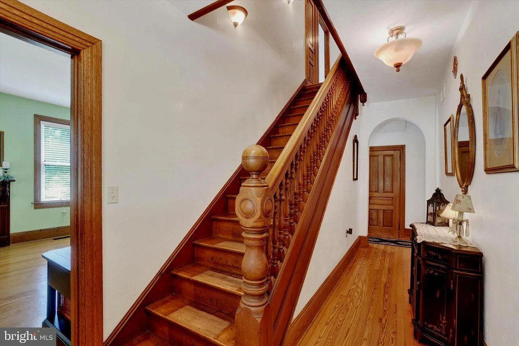 Step inside, and the commitment to preservation continues. The first and second floors boast soaring 9½-foot ceilings, original six-panel doors, decorative archways, and hardwood floors, some newly added, others original and restored. The craftsmanship is evident in the intricate millwork and thoughtful layout that keeps the home feeling spacious but connected.