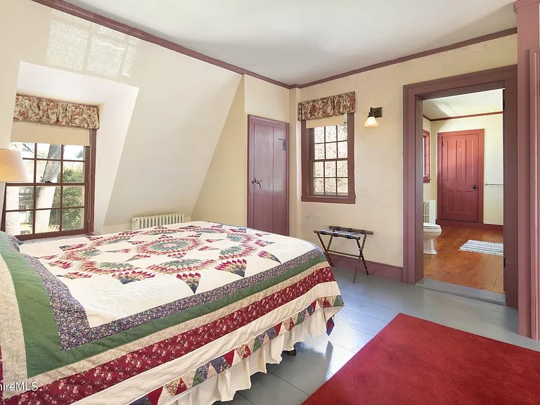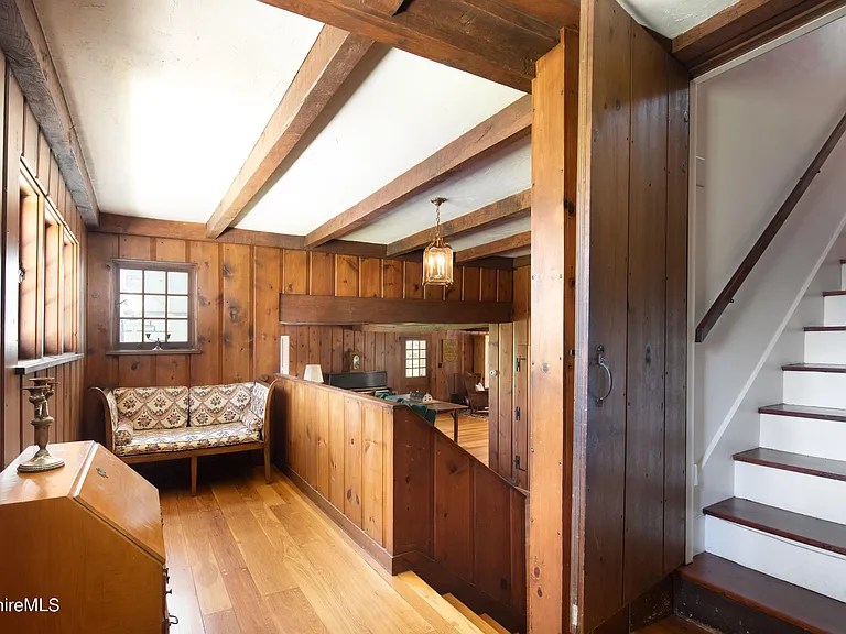 Inside, the floor plan follows the traditional colonial logic: central hallway, large gathering rooms, modest but functional private quarters. But the home breaks its own rules in the best way. One bedroom has its own tiny staircase, a charming detail that feels like something out of a storybook.
