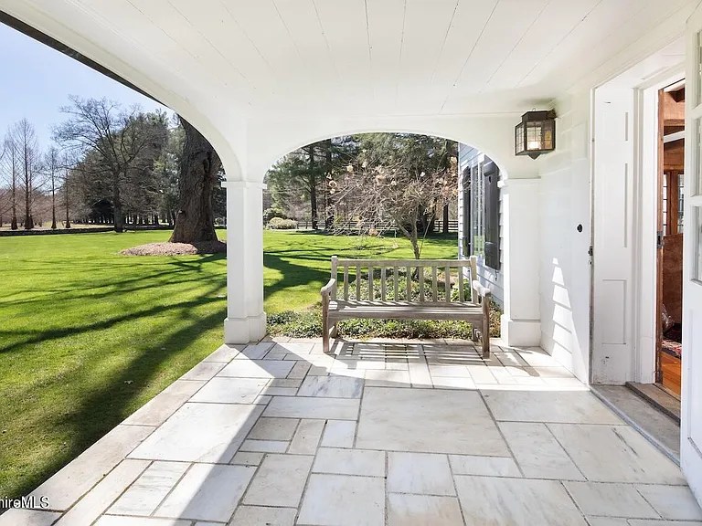Architecture doesn’t stop at the four walls. It spills into the land. The locally sourced marble porch is one of those quiet architectural features that reveals how deeply this home is tied to its place. Marble from nearby quarries was laid with intention, cool under bare feet in the summer, beautiful to look at year-round.