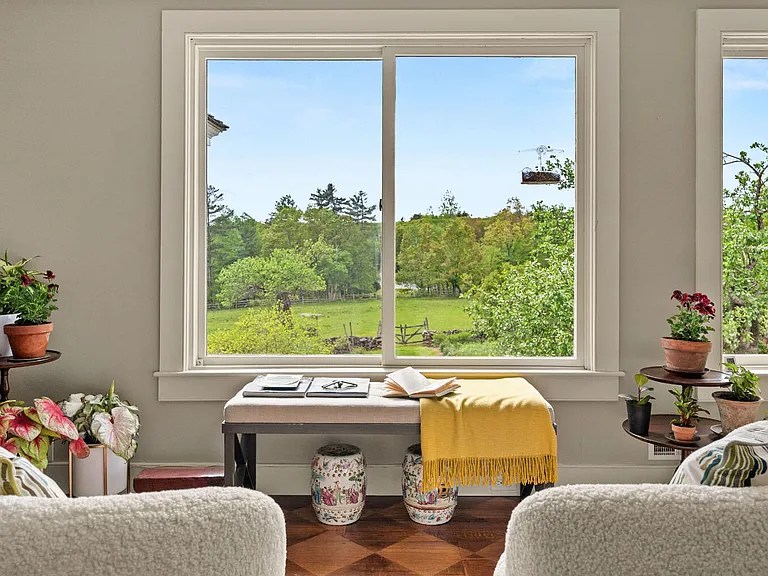 Located just 2.5 hours from both Boston and New York City, East Hill Farm offers complete privacy with convenient access to nearby towns like Great Barrington and Sheffield. From its high vantage point, the property offers long-range views, a spring-fed pond, and quiet surroundings. It’s a move-in-ready estate that works for full-time living, multigenerational families, or as a second home with space for farming, retreats, or creative projects.