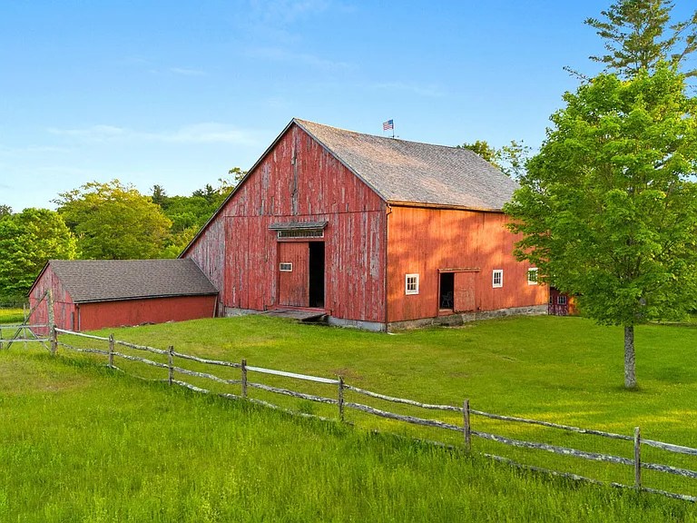The large red barn was moved to the property from Amherst, MA, and reassembled piece by piece. It’s built on a full stone foundation and includes:
