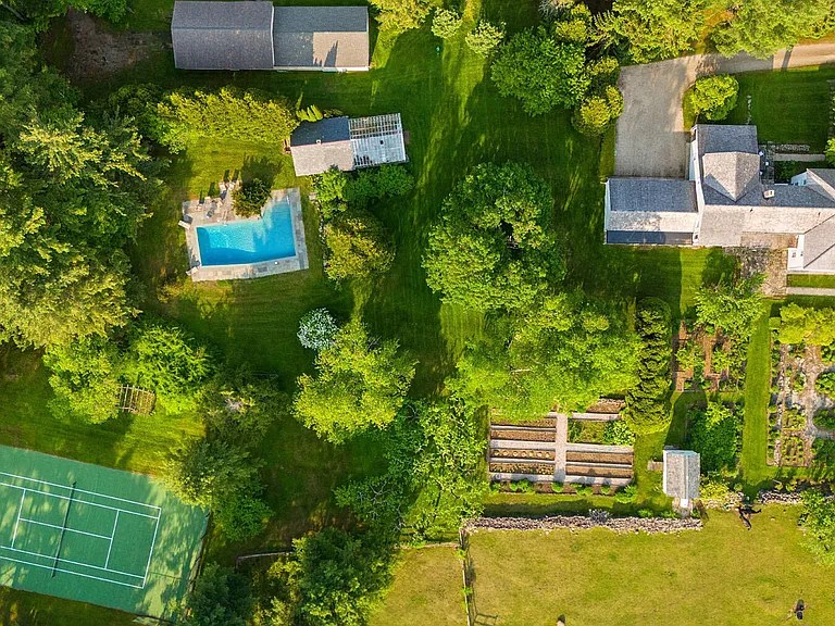 If you’re looking for a historic estate with serious acreage, timeless architecture, and a private location in the Southern Berkshires, East Hill Farm in New Marlborough, Massachusetts, checks every box. This 227-acre hilltop property includes a 1798 Georgian-style main home, a converted guest house, original barn, and miles of trails, pastures, gardens, and woodlands. It’s the type of property that rarely comes on the market, especially with this much land and preserved character.