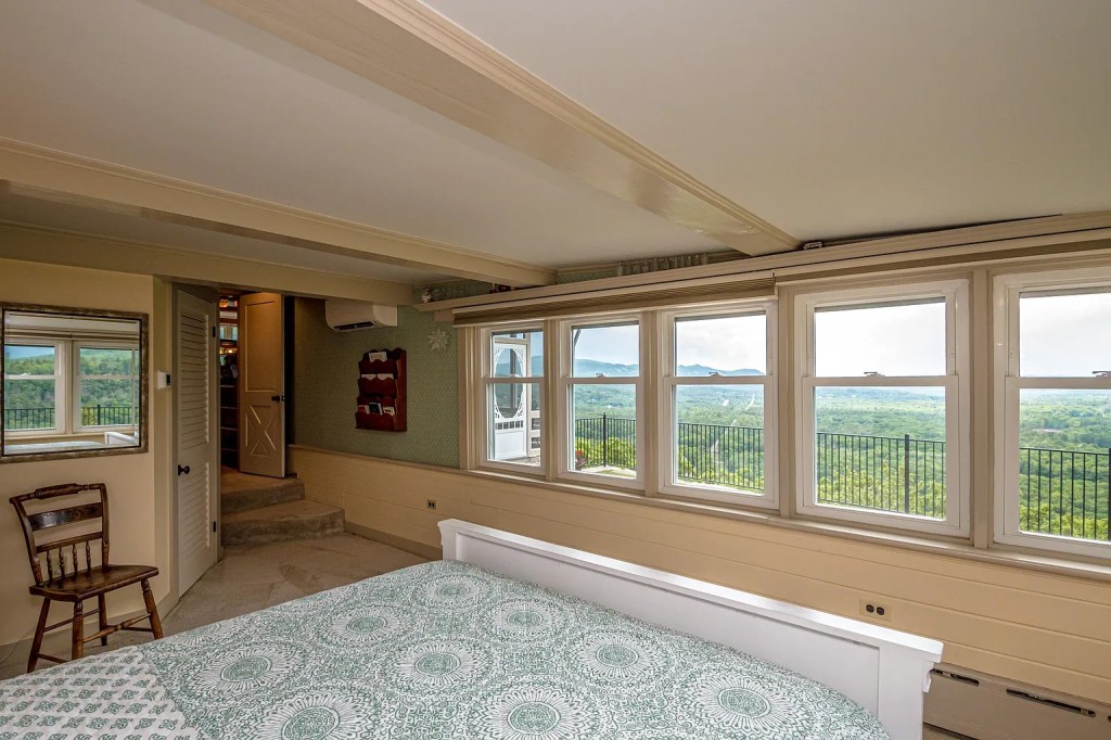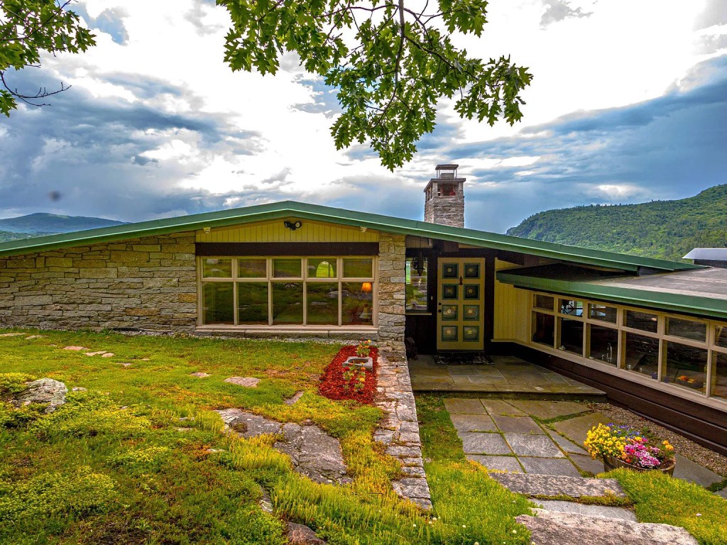 There’s something instantly grounding about a home that doesn’t just sit on land, but becomes part of it. That’s the feeling you get with this Frank Lloyd Wright–inspired property perched on Pear Mountain in Bartlett, New Hampshire. Set on 6.7 private acres, this 1970-built retreat channels organic architecture in a way that’s both intentional and timeless.