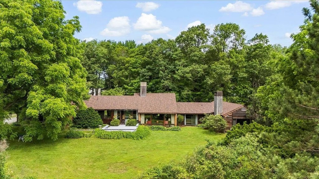 Coventry House is a rare 1970s architectural gem in Manchester, Vermont, combining: