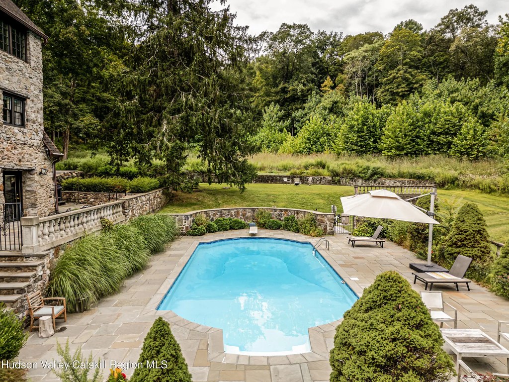 Beyond its architectural merit, Embury Stone House excels in outdoor living. The property features a heated saltwater pool and spa, surrounded by multiple stone terraces that echo the home’s historic craftsmanship. These areas invite al fresco dining, summer gatherings, and private moments of reflection amidst the natural surroundings.